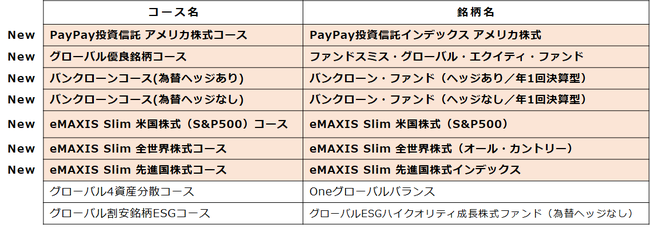 PayPay資産運用で取り扱う米国ETF17銘柄、投資信託9銘柄