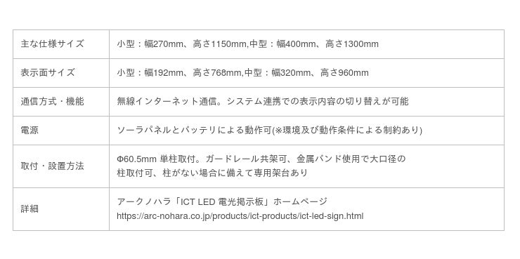 株式会社アークノハラ(本社:東京都新宿区、代表取締役社長:岡本力、以下:アークノハラ)は、四万十市とJR四国が行う「JR江川崎駅~道の駅よって西土佐間の自動運転実証実験」(2022/8/21~8/28)において、「ICT LED電光掲示板(以下、ICT LED)」を対向車接近表示器として設置、現地での安全対策に協力します。