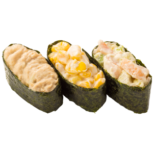 店舗で仕込む「サーモンアボカド」など、魚べい・元気寿司で人気の定番ぐんかん3種をお試しいただけます。