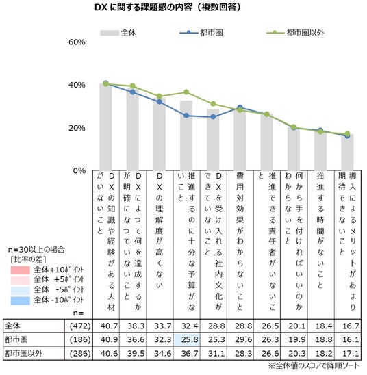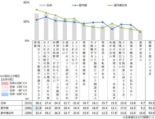 都市圏以外では「十分な予算がないこと」も上位に挙がる。