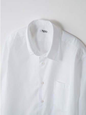 きれいな“白”の表現に定評のある静岡県浜松市で織られた生地の中でも、特にクリーンな魅力を発揮するのがこのポプリンシャツです。通気性がよく、肌触りがなめらかで着心地の良い一枚。高番手のきめ細かな生地は微かな光沢も感じられます。シンプルなデザインと小ぶりな襟がモードな印象で、着こなしの幅を広げます。小ぶりな襟は、第一ボタンを開けても閉めてもよく似合い、ジャケットやブルゾンを羽織ってもきれいに収まります。