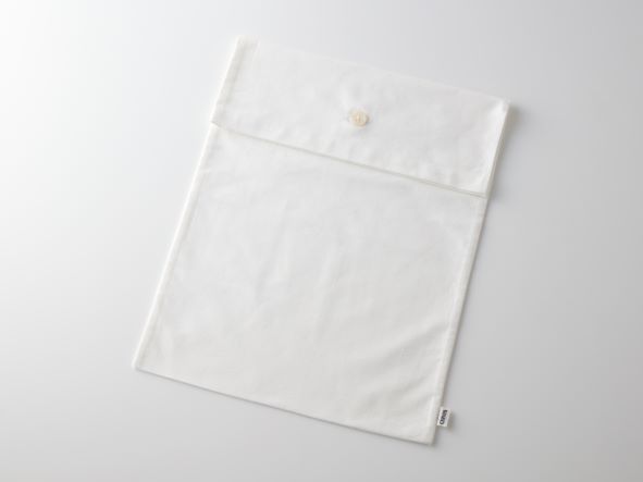 今回の白シャツは、いずれのタイプも白い布帛生地のガーメントケースに入れて販売します。出張や旅行のお供としても最適なガーメントケース。オケージョンを問わず、白シャツを気軽に着てほしいという思いが込められています。
