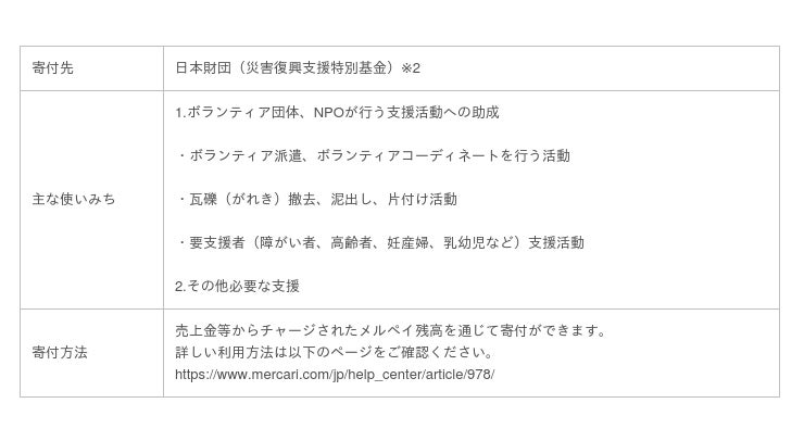 なお、本取り組みはメルカリと日本財団両社の持つアセットを通じた寄付の仕組みを構築・推進する業務提携※1における「災害発生時に迅速に寄付できる仕組みの開発」の一環です。