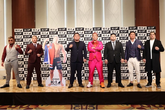 会見欠席となった石井以外の7選手が登壇すると、中村プロデューサーは「「K-1 JAPAN GROUPの重量級はヘビー級からスタートして、90kg以下のクルーザー級を新設。昨年は京太郎選手がボクシングからK-1に戻り、石井選手もK-1に参戦し、100kg以下のヘビー級と100kg以上のスーパー・ヘビー級も作りました。グループ全体として近年、重量級が盛り上がってきているのを感じ、選手層も厚くなってきて、無差別級トーナメントをやるとしたらここだな』と思って決めました。K-1は競技化されて、細かく階級も分かれているんですが、戦いの原点はデカくて強いヤツらが殴り合って誰が一番か決める。それもK-1の魅力だと思ってます。そういった戦いをここにいる選手にはぜひ見せてほしいと思います」と大きな期待を寄せました。
