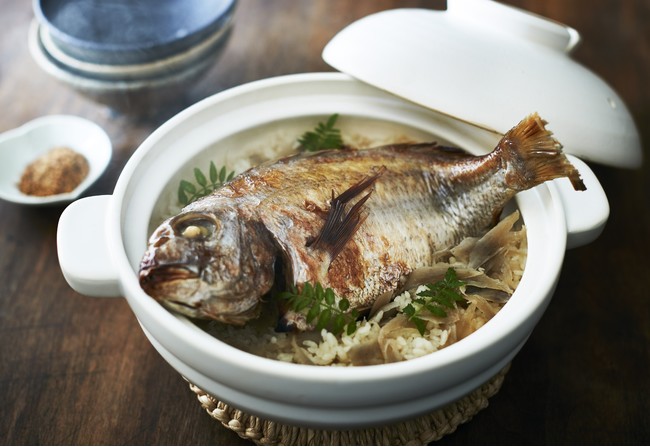 貫禄ある天然真鯛をまるごと一尾使用。鯛の骨や昆布などを合わせただしと香りよいごぼうと一緒に炊き上げます。ご自宅で炊き上げるからこその香りを、特別な日の食卓に。二杯目にはだしをかけてだし茶漬けに。味わいの変化をお愉しみください。