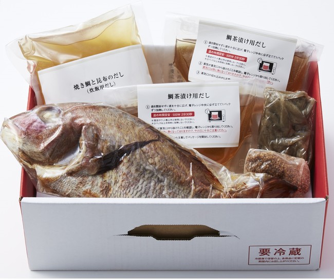 鯛、ごぼう、焼き鯛と昆布のだし、茶漬け用だし、胡麻