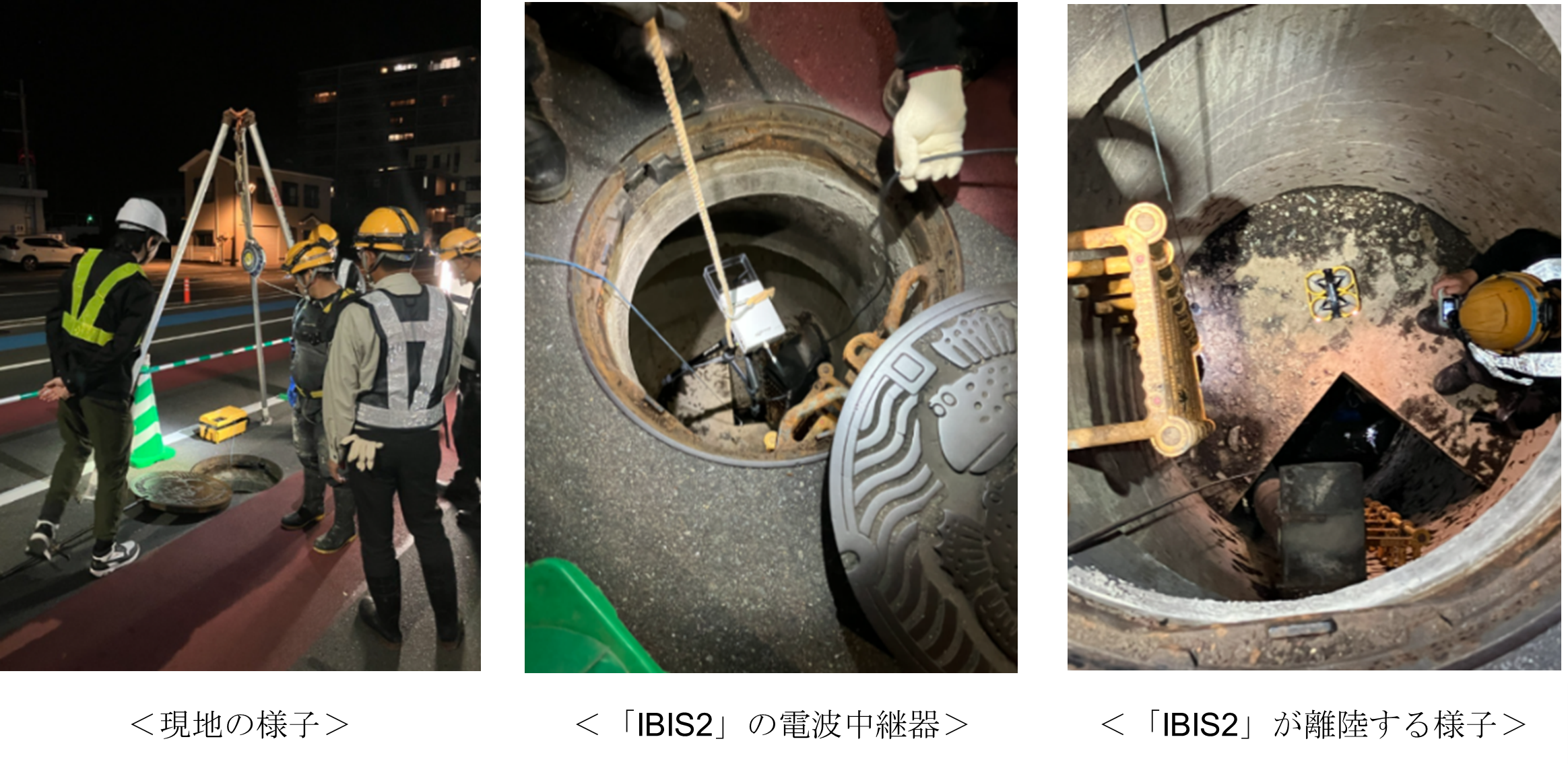 本調査は、佐賀市神野地区に敷設された直径1.2mの下水道管(約270m)を対象に実施しました。「IBIS2」は、狭小空間での飛行に特化した設計となっており、電波中継器を使用することで、GPSが届かない環境でも安定した飛行が可能です。これにより、従来の目視点検では困難だった箇所の詳細な映像取得が実現しました。
