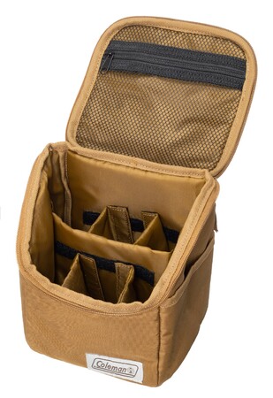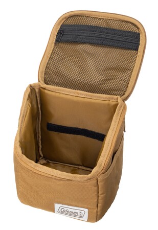 ワンマントルランタンをケースごと入れて持ち運べるサイズのソフトギアボックス。収納部分には取り外し可能な仕切りパットがついていて、収納するギアの大きさに合わせて調整できます。ふた裏にはジッパー付メッシュポケット装備され、小物を分けて収納できます。背面のデイジーチェーンにはカラビナやシェラカップなどの小物を吊り下げることができます。