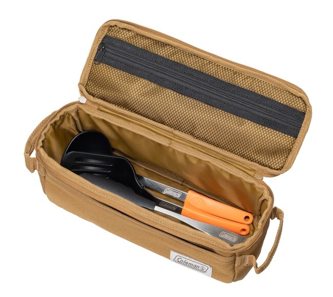 キャンプ料理に欠かせないスパイスや調味料の収納ケース。かさばってしまう調味料を1つのケースに収納できるのでキッチン周りがすっきりします。様々なボトルサイズに対応できるよう、取り外し可能な仕切りパットがついていて、お気に入りの調味料をアウトドアへ持ち出せます。大きく開く上蓋で中のものが取り出しやすく、運搬時にも安心なパッド入りなので型崩れしません。背面にはカラビナなどを取り付けられるデイジーチェーンがついているので、様々なキッチンレイアウトに合わせることができます。