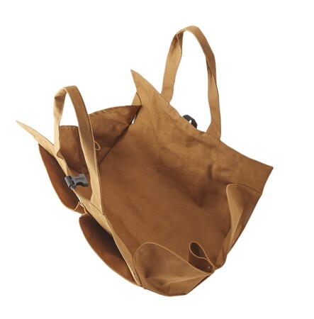 コットンキャンバス生地を使用した耐久性の高い薪バッグです。正面には大きな2つのポケットがついていてキャンプや焚火に必要な細々としたキャンプ用品の収納にも役立ちます。上部についたバックルでしっかり固定できるので薪が落ちづらくなっています。左右についたスナップボタンを止めることでギアバッグとしても使用できます。