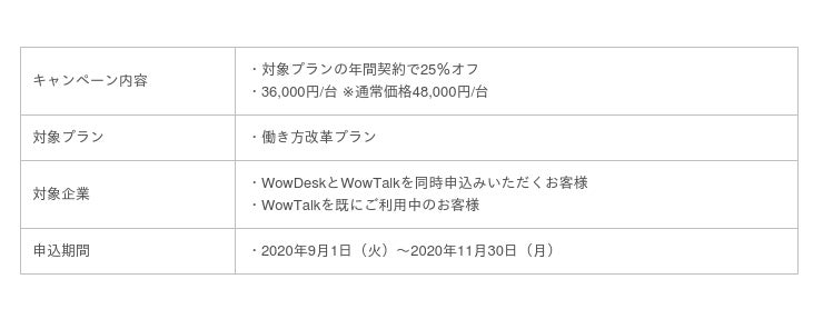 企業ミッションに「すべての人が自信を持って幸せに働ける世界をつくる」を掲げ、国内トップクラスの売上・シェア(利用社数7,000社超)を誇る国産ビジネスチャット「WowTalk(ワウトーク)」の自社開発・提供、そして国内総代理店として国内トップクラスの名刺管理ソリューション「CAMCARD BUSINESS(キャムカードビジネス)」を提供するワウテック株式会社(東京都中央区、代表取締役 瀬沼悠 以下、「ワウテック」)は、このたび、昨年10月にリリースした、クラウド型受付システム「WowDesk(ワウデスク)」のキャンペーンを実施することをお知らせいたします。