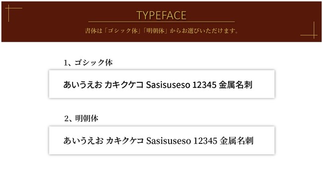 書体は「ゴシック体」「明朝体」からお選びいただけます。