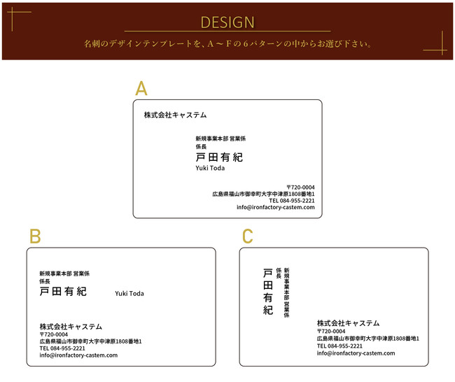 精密部品メーカーの株式会社キャステム(広島県福山市、代表取締役:戸田拓夫)は、真鍮製またはステンレス製の金属カードにレーザーマーカーで加工を施して製作するオリジナル名刺「金属名刺」を商品化致しました。