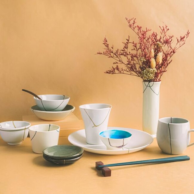 作家や窯元に眠るデッドストックの陶磁器を金継ぎでリメイクした一点物の器『継皿』と9色×3柄で27種類のカラフルなお箸『色箸』をオンラインで販売しています。