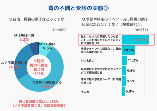 - 胃腸の不調を感じる人は9割以上