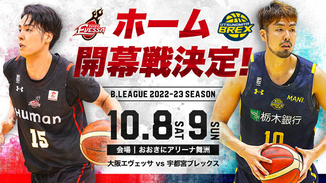 2022-23シーズン 大阪エヴェッサの初戦はアウェーにて10月1日(土)、2日(日)千葉ジェッツ戦となり、ホームでの開幕戦は10月8日(土)、9日(日)宇都宮ブレックス戦となりますことをお知らせいたします。