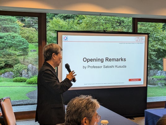 梶田先生がKKHの医療従事者に対して行っている特別講義の様子
