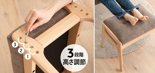 高さを3段階に調節できるので、使う方の身長やチェアの高さに合わせて、よりリラックスしやすい姿勢をサポートします。高さ調節は42cm・45cm・48cmと3段階。付属の六角レンチで簡単に変えられます。