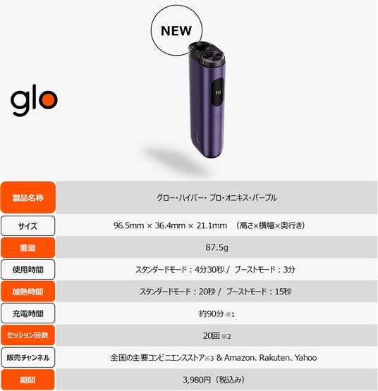 加熱式たばこデバイス「glo(TM) HYPER pro」製品概要