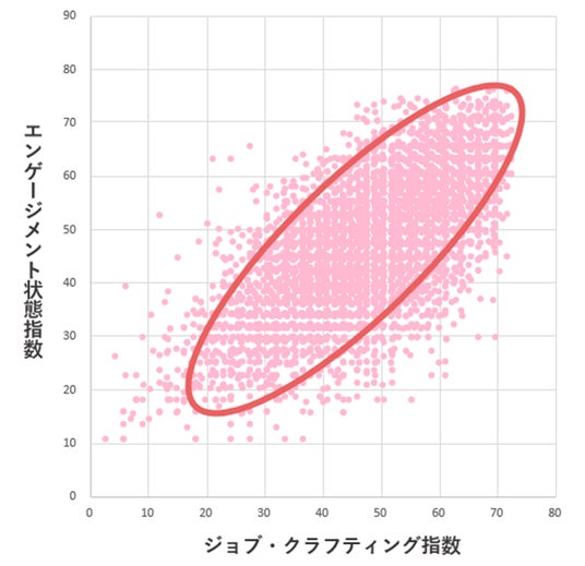「ジョブ・クラフティング」が高いほどエンゲージメントは高くなる