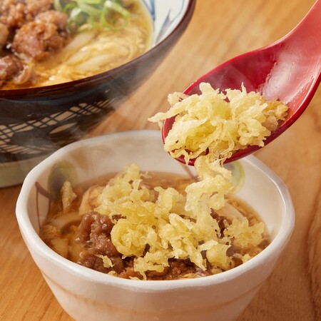 一軒一軒すべての店で粉からつくる打ち立てうどん。店で数時間おきにつくる風味豊かなかけだしをべースに、溶き卵を数回に分けて入れることでふわとろな食感が自慢の玉子あんかけ。そこに、お店でじっくり火を入れて手づくりした牛肉と合わせそぼろ。手づくりが重なり、一杯で幾重にも重なる味わいをお楽しみいただけます。