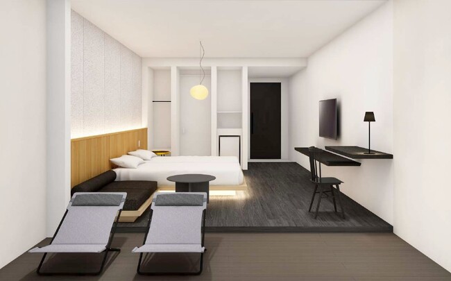 客室は、ツイン8部屋、フォース4部屋の合計12室からなり、全室スマートフォンやタブレットを使った無人チェックインシステムを導入した完全無人施設となっています。またフォースの室内ではスマートスピーカーを取り入れ、テレビや照明、空調機器などは、声で操作をすることができます。落ち着いた大人の雰囲気を醸し出す〈クールモダン〉、リゾート感を満喫できる〈アジアンテイスト〉の2タイプの客室からお選びいただけます。