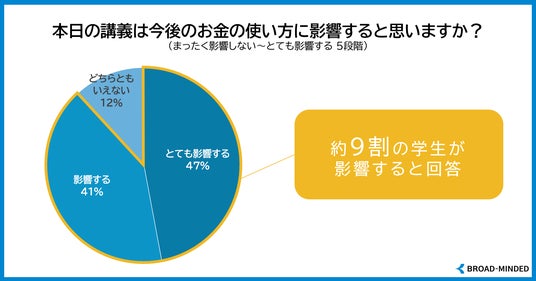 約9割の学生は、今回の講義が今後のお金の使い方に影響があると回答しました。