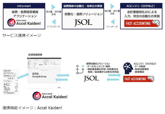 ファーストアカウンティング株式会社(本社:東京都港区、代表取締役社長:森 啓太郎、以下、ファーストアカウンティング)は、株式会社エヌ・ティ・ティ・データ・イントラマート(以下、NTTデータ イントラマート)が提供する経費・旅費精算業務アプリケーション「intra-mart Accel Kaiden!」と、自社が提供するAI-OCRをはじめとするAIエンジン「Robota」を連携した新たなソリューションを株式会社JSOL(以下、JSOL)を介して提供します。