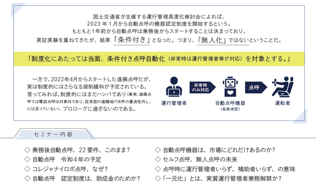 2023年1月から自動点呼の機器認定制度を開始するという。
