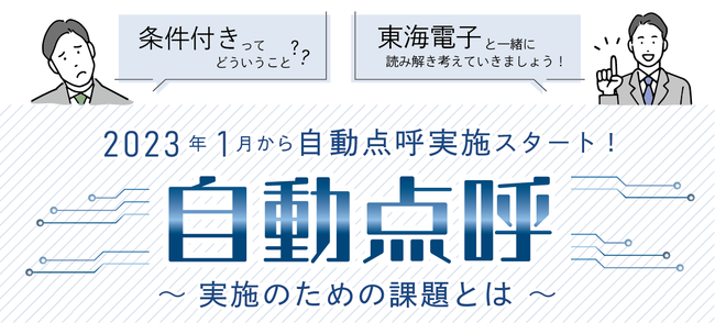 飲酒運転防止のためのアルコール検知器及びIT点呼システムを開発・販売する東海電子株式会社(本社:静岡県富士市 代表取締役:杉本 哲也)は、 この度、 「2023年1月から自動点呼実施スタート!自動点呼~実施のための課題とは~」セミナー(無料)を10月7日(金)に開催いたします。