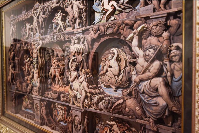 精巧に切り抜いた絵柄を何層にも重ねて、新たな命を吹き込む