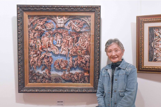 大橋さんは「以前は有名な絵画をモチーフにした重厚な作品を制作していたが、コロナ禍以降は、自分自身も含め、見る人が明るい気持ちになれるようなカラフルでポップな作品の制作も行っています」などと話していた。