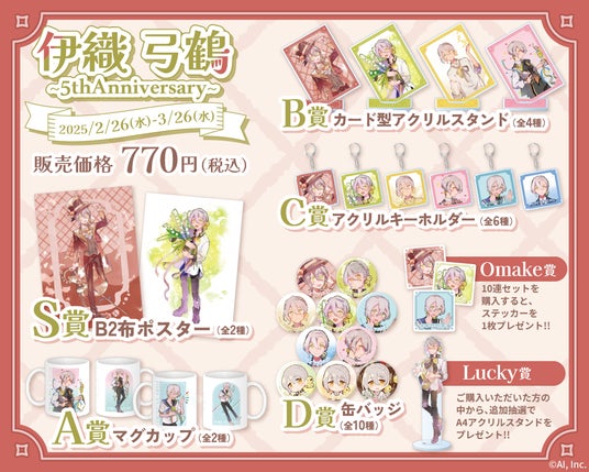 高品質AI音声合成エンジンAITalk(R)を開発・提供する株式会社エーアイ(本社:東京都文京区、代表取締役社長:廣飯 伸一、証券コード:4388、以下:エーアイ)は運営するオンラインくじ「からもるくじ」にて、誕生から5周年を迎えた自社の音声合成キャラクター「伊織 弓鶴」をモチーフにして「伊織弓鶴~5thAnniversary~」を2025年2月26日(水)より開催します。