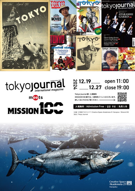 学校法人 21世紀アカデメイア(学長:田坂広志、本部:東京都千代田区)は、2024年12月19日(木)から27日(金)まで、「Creative Space Akademeia 21 Harajuku」にて、国際情報誌『Tokyo Journal』と、6つの世界記録を持つスピアフィッシャー・小坂董平氏による冒険プロジェクト[MISSION100]を組み合わせた特別展「Tokyo Journal meets MISSION100」を開催いたします。