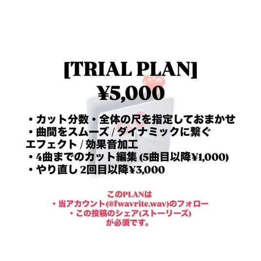 ※このプランは公式Instagramアカウント( https://www.instagram.com/fwavrite.wav/ )のフォローとシェアが必要となりますのでご注意ください。