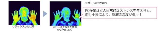 ストレスによる「肌荒れ」は、血行不良によって皮膚温が低下し、
