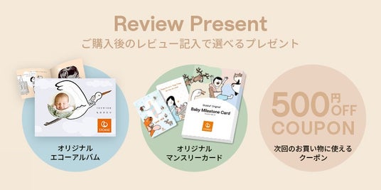 税込5,500円以上ご購入のお客様に、レビュー記入でお好きなプレゼントがもらえます。オリジナルグッズはイラストにもストッケ製品が出てくるのがうれしい!