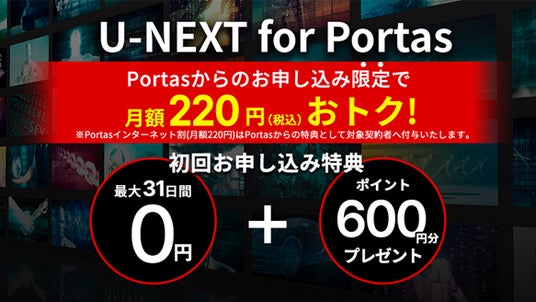 「U-NEXT for Portas」をお申し込みいただくことで割引特典が適用