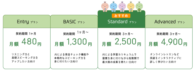 Standard プランの最大の特徴は、MyRecipe( マイレシピ )機能を活用した ”学習者一人一人に合った最短で効果的な学習カリキュラム" による効果的な英語学習が可能です。