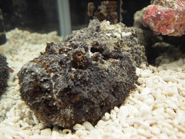 節分にちなみ、名前に“オニ”がついている「オニ ダルマオコゼ」を展示いたします。コブ状の突起やくぼみをもち、まるで岩のようにゴツゴツとしたからだが特徴的です。さらに口を大きく広げエサを食べるシーンをモニターにて上映し、海の鬼の豪快な姿をご覧いただけます。