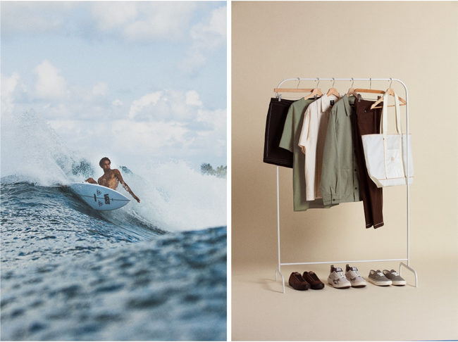 シューズに加え、落ち着いた色合いのシャツ、ジャケット、 Tシャツ、ボードショーツなどのアパレルアイテムも登場します。