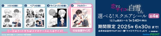 taskey株式会社(本社:東京都新宿区、代表取締役CEO:大石弘務)は、マンガ『恋するサイコの白雪くん』のオリジナルスクエアシールを発売することを発表します。
