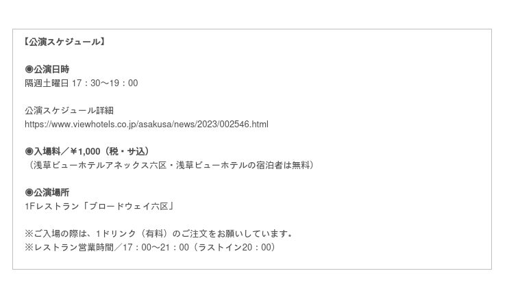 浅草ビューホテルアネックス六区の舞台興行について