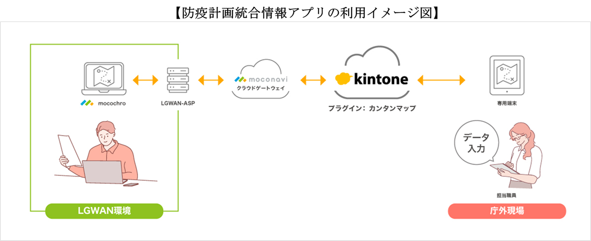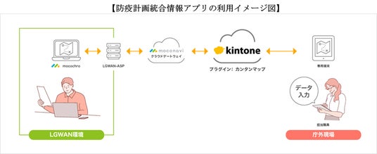 その施策の中に、LGWAN環境での業務効率化を目的に導入したkintoneのプラグインが正常に動作せず、業務改善効果を十分に発揮できないという課題がありました。この課題を解決するため、LGWAN-ASPに登録された「moconavi LGWANクラウドゲートウェイサービス」を採用し、LGWAN環境から安全にクラウドサービスへ接続できる環境を確保し、通信分離・無害化、サンドボックス、コピー&ペースト制御など高度なセキュリティ機能を備えセキュアに業務ができる環境を実現しました。