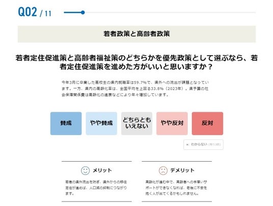 鹿児島県知事選挙では若者定住促進策賛成が76.0%の賛成に。投票マッチング集計結果