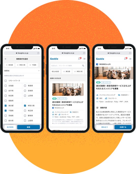 Geekleは、ソフトウェアエンジニアとエンジニアを採用したい企業をマッチングするオンラインサービスです。