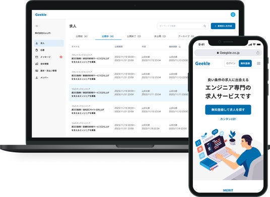 Geekleはエンジニア向けの求人サイト、企業向けの求人管理サイト、Geekleを運用する企業向けの管理者向けサイトの3サイトで構成されています。