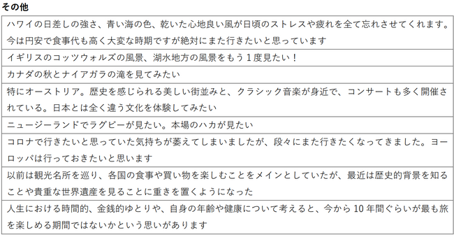 ■行っておきたい国・地域について思うこと(本調査の自由回答を抜粋)