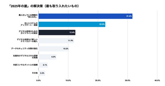 ● 「2025年の崖」に対する解決策として、属人化している情報の「見える化」が最も選ばれた。