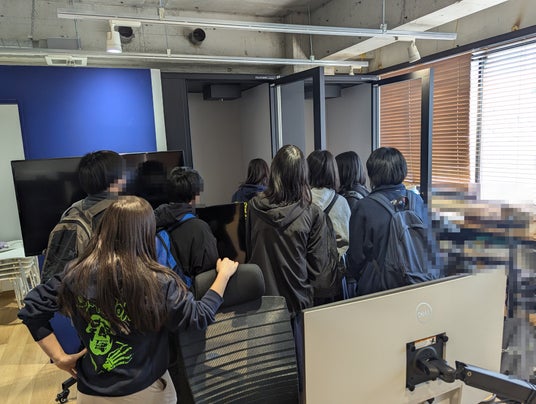 生徒たちは職場を見学し、その後、オルターブースの若手クラウドエンジニア2名がクラウドサービスについての説明や、エンジニアの仕事に至る進路選択について楽しく解説しました。さらに、学生たちが事前に用意していた質問にも丁寧に回答し、終始和やかな雰囲気の中で交流が行われました。